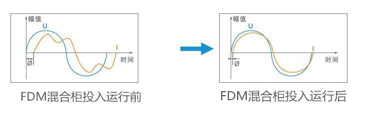 FDM低压混合动力补偿柜装置(滤波型)包含动态无源模块与有源滤波模块二部分,共同承担无功补偿与谐波治理的任务。其工作原理是,无源模块包括多组偏调谐支路,主要动态调节无功并抑制特征次的负载谐波电流;同时有源滤波模块动态消除谐波(系统无功补偿)。